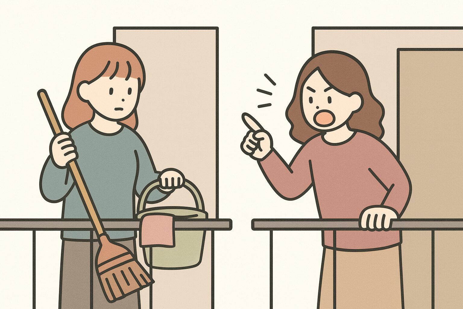 でも、いざ掃除しようとバケツを持っていくと、「この水、流して大丈夫かな?」「隣の洗濯物に飛んだらどうしよう」って不安が頭をよぎって、結局そっと窓を閉めちゃう…なんて経験、ありませんか?