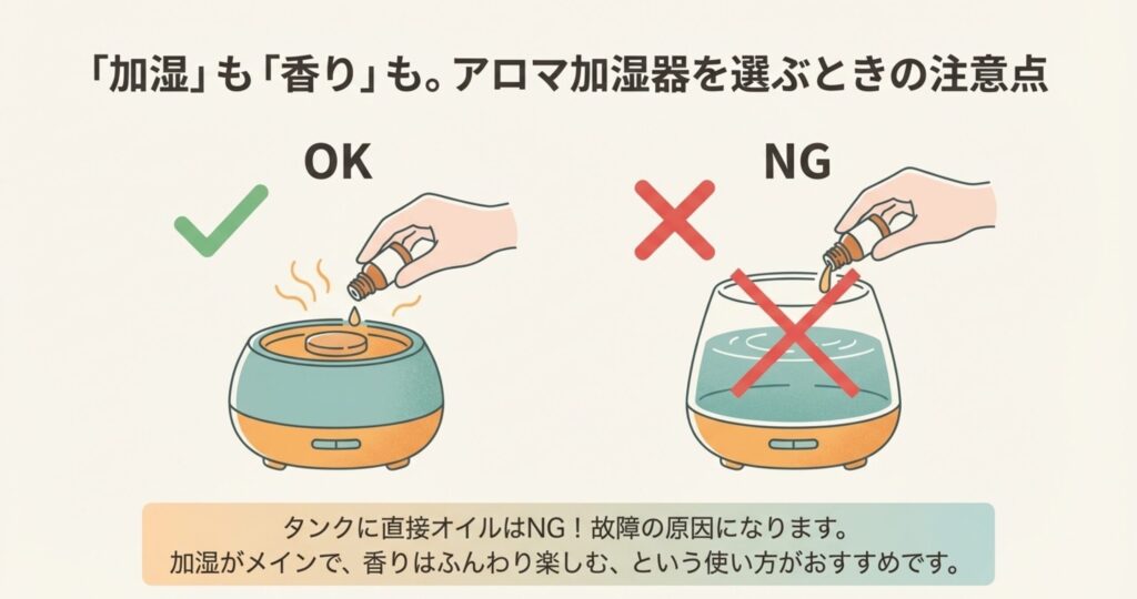 給水タンクにアロマオイルを入れるのがNGな理由も含めて、ここは店頭でも特にお伝えしているポイントなんです。