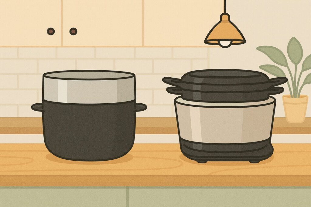 ご飯は「もっちり派」で、炊飯器でローストビーフや無水カレーも作りたいならバーミキュラ、という選び方が分かりやすいと思いますよ。