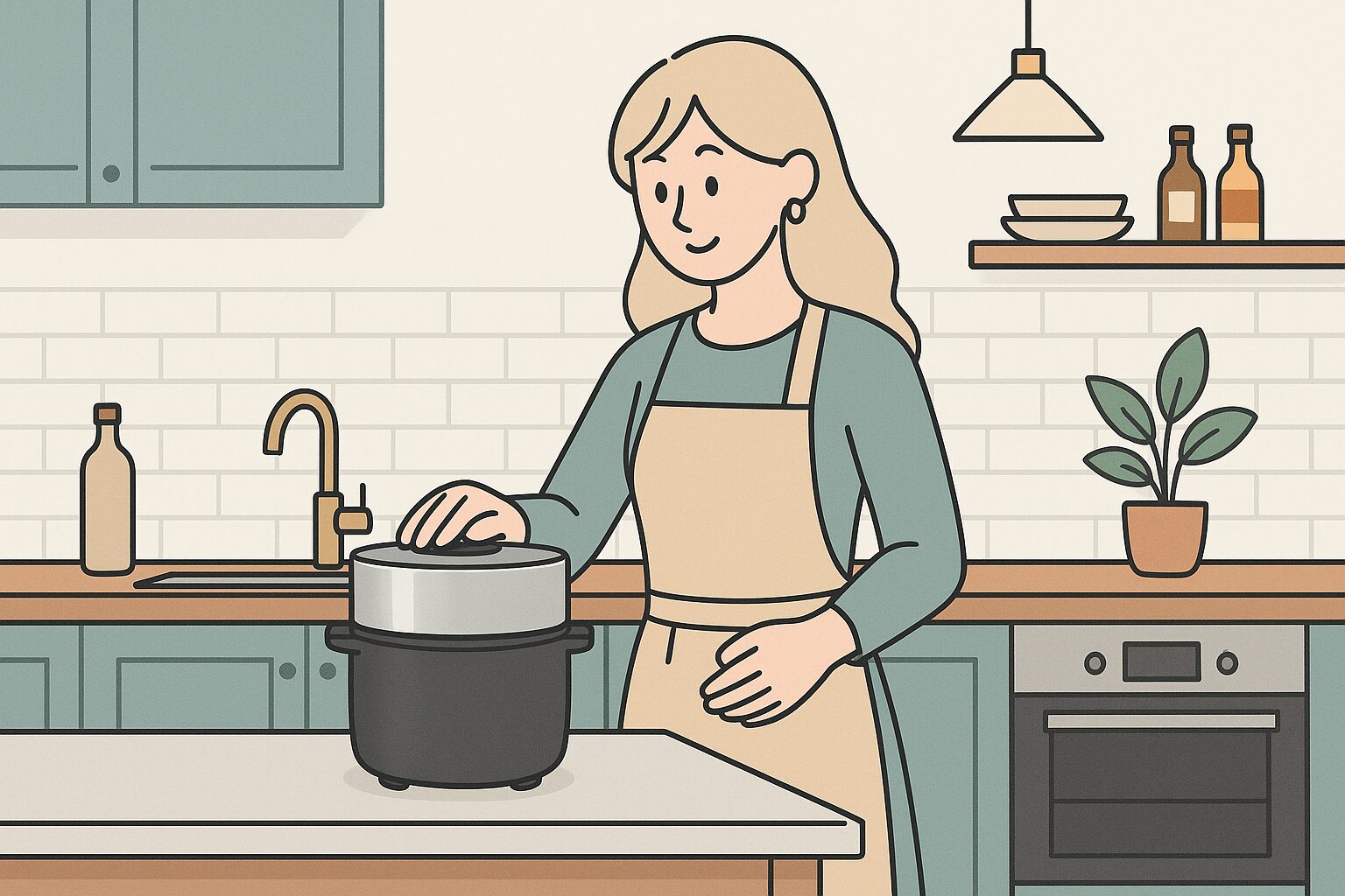 - 内釜を外釜の上にセットし、蓋を閉める。