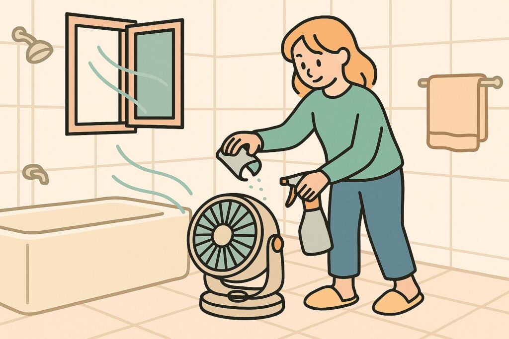 重曹や漂白剤でカビを落としても、浴室が濡れたままでは、カビはすぐに再発してしまいます。カビの最大の原因は「湿気」ですからね。