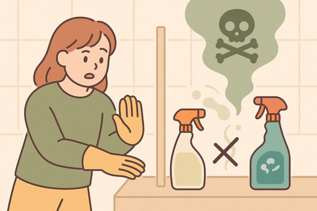 クエン酸などの「酸性タイプ」の洗剤と、カビキラーなどの「塩素系」の洗剤が混ざると、化学反応が起きて「有毒な塩素ガス」が発生します。これは本当に危険で、吸い込むと呼吸困難になったり、最悪の場合、命を落とす危険性もあります。