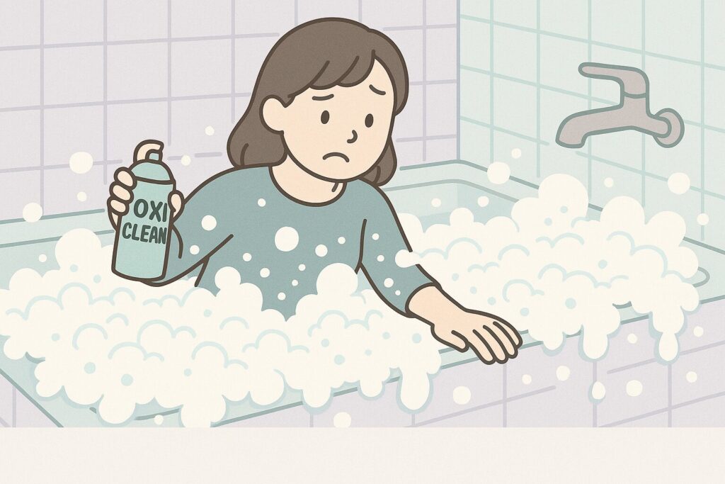 ただし、オキシクリーンもアルカリ性なので、変色やコーティング剥がれのリスクがゼロではありません。特に人工大理石の浴槽や床材には注意が必要な場合もあるので、最初は放置時間を短めにするか、目立たない場所で試してからの方が安心ですね。