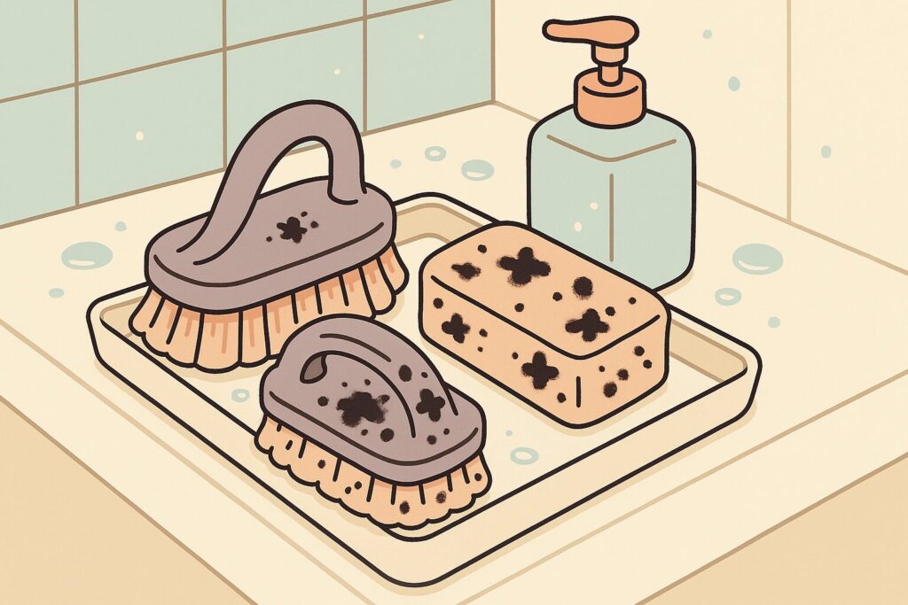 数日もすれば、ピンクぬめり(正体は酵母菌です)や、あの頑固な黒カビが発生してしまいます。そうなると、お風呂をキレイにするための掃除用具自体が雑菌の温床になってしまって、掃除のたびにカビを塗り広げている…なんて、本末転倒なことになりかねません。これは本当に避けたいですよね。
