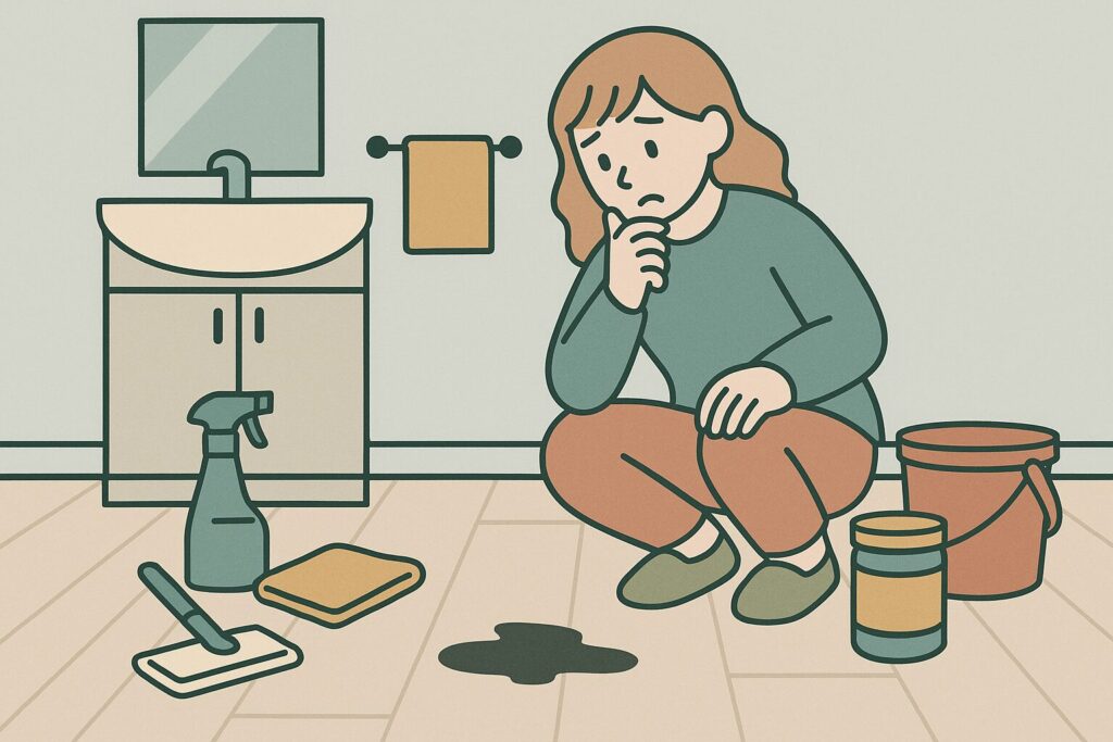 洗面所の床の黒ずみがどうしても落ちないときは、まず「何が原因で付いた黒ずみか」をざっくり分けて考えると整理しやすいです。