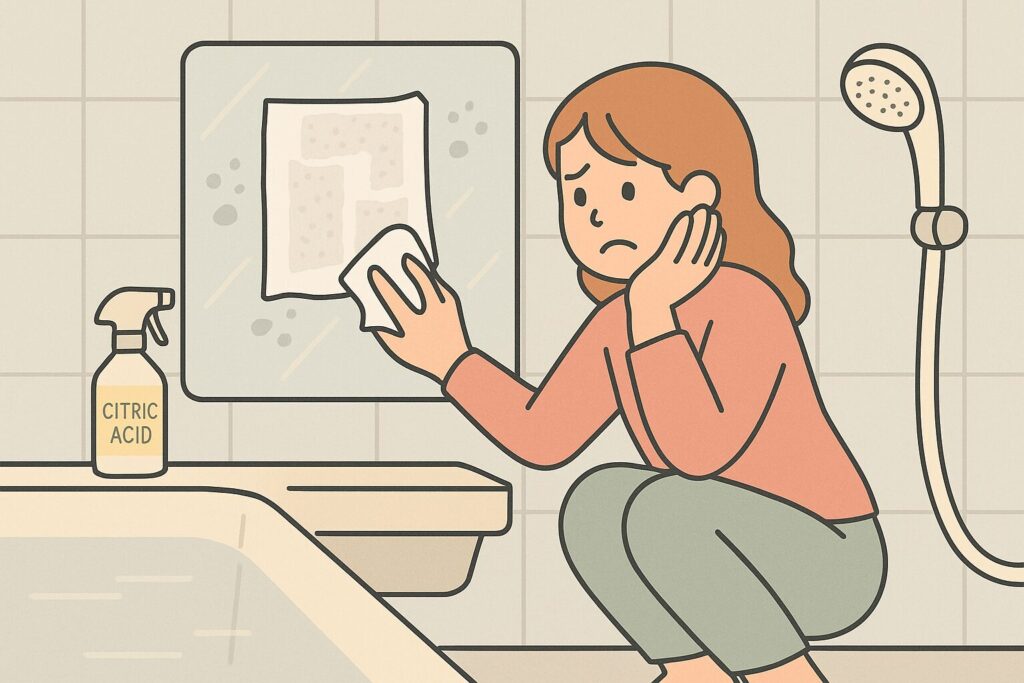 これが、お風呂の鏡掃除をさらに難しくしている原因なんですね。