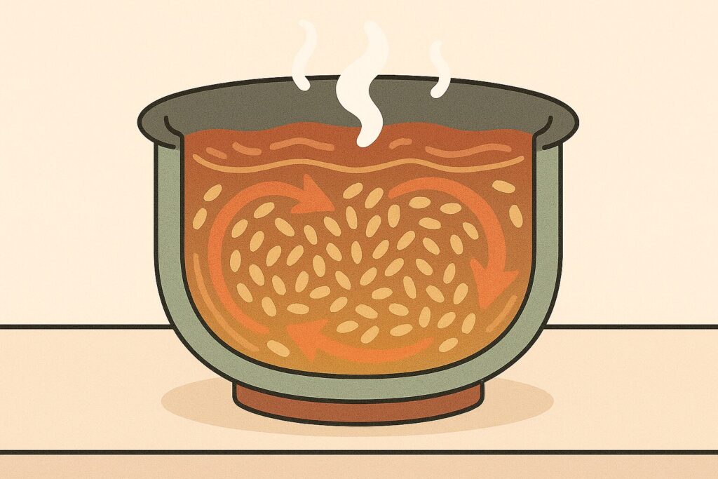 これにより、釜の中に局所的な加熱と激しく複雑な熱対流(お米が舞う)を起こすんです。この激しい対流が炊きムラをなくし、一粒ひと粒をふっくら、もっちりと炊き上げます。