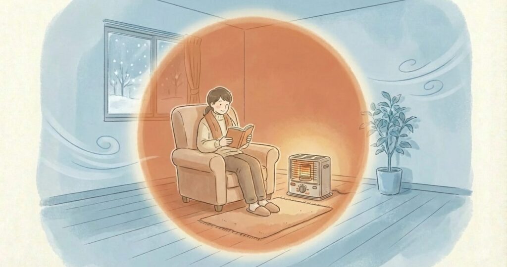 メイン暖房として考えるのではなく、エアコンが効くまでの「中継ぎ」や、自分の周りだけを暖める「スポット暖房」として割り切るのがコツですよ。