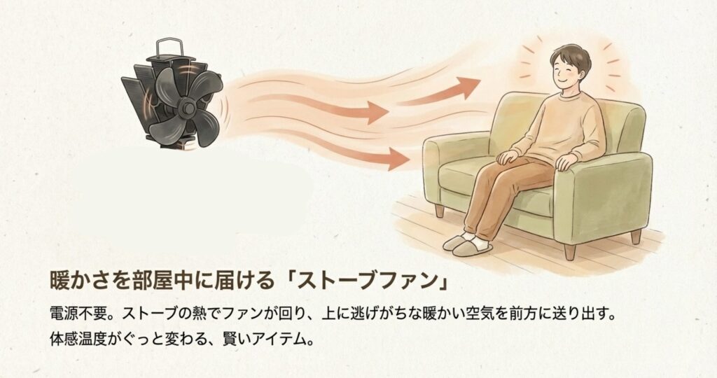 最近、キャンパーさんの間で大流行しているのが「ストーブファン」。
