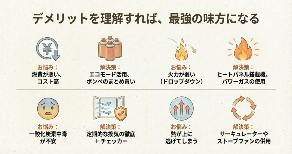 カセットガスストーブのデメリットを補う上手な活用まとめ