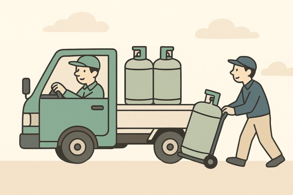 一方、プロパンガスはプロパンやブタンが主成分。こちらはガスボンベを配送員さんがトラックで運んできて、家の裏などに設置します。
