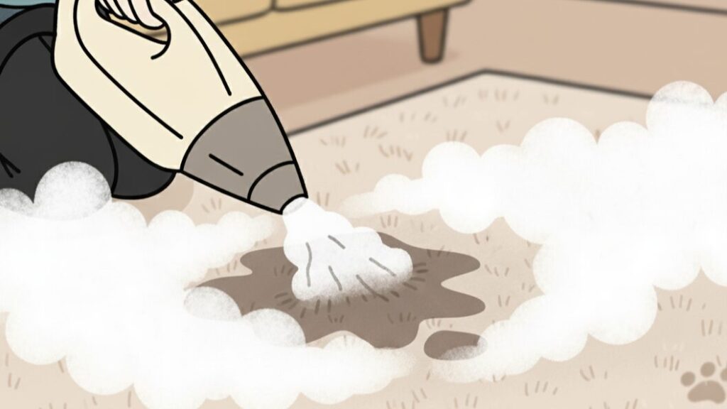 ですので、ペットの粗相や吐き戻しなど、タンパク質系の汚れには、高温のスチームクリーナーではなく、ぬるま湯(40℃程度)でお手入れするのが鉄則、と覚えておいてくださいね。
