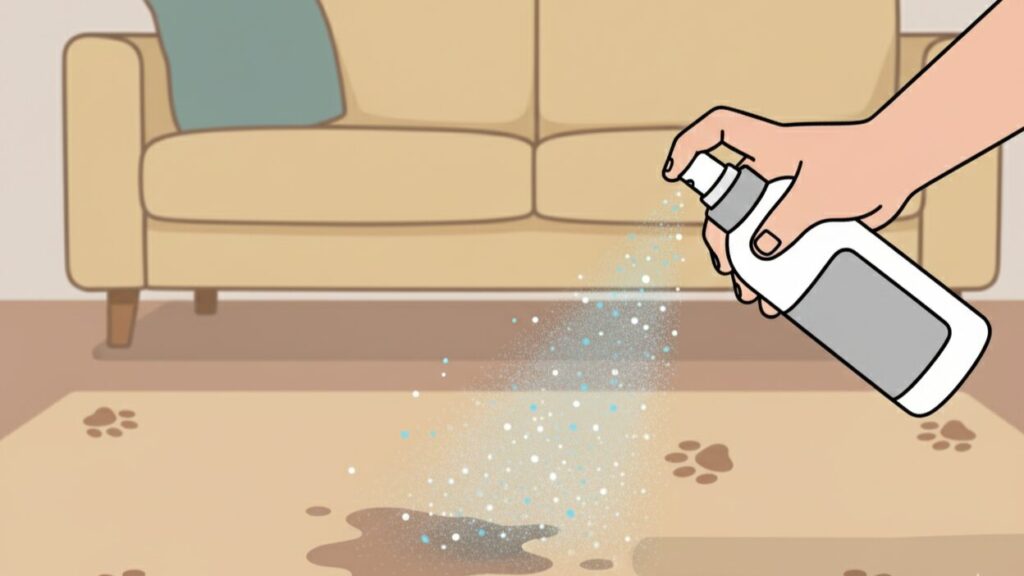 このとき、香りでごまかすタイプではなく、尿の成分を分解してくれる「酵素系」の消臭剤を選ぶのがポイントです。粗相した場所だけでなく、少し広めの範囲にスプレーしておくと、より安心ですよ。