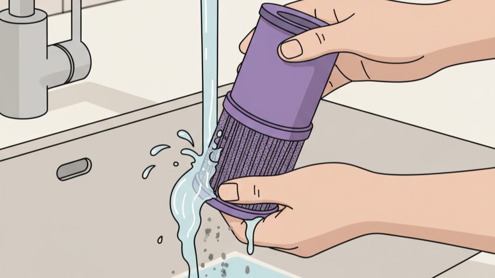 これは最も重要なお手入れです。ダイソンのフィルターは水洗いができるように設計されています。