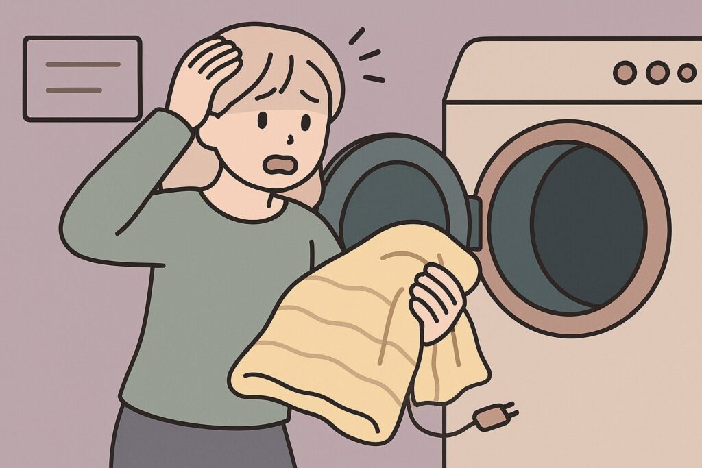 特に多いのが、「洗濯したあと、乾燥機にかけてもいいの?」という疑問。そして実は、「うっかり乾燥機にかけちゃったんだけど、どうしよう…」という焦りのご相談も意外と多いんです。
