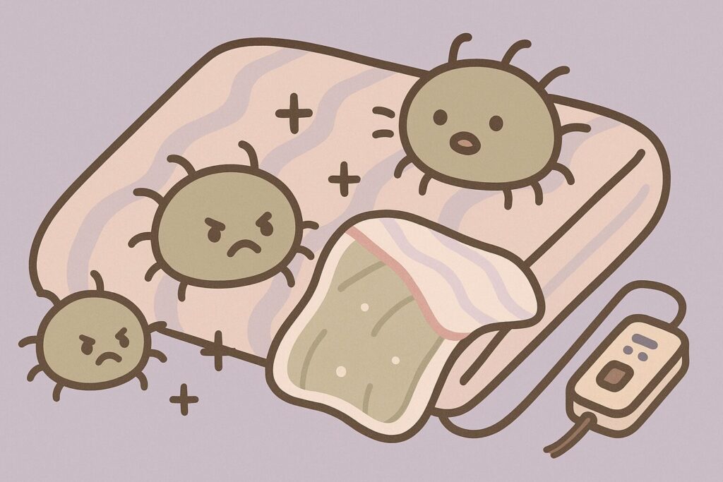 洗える表示の見方や、ドラム式で洗うときのリスクを含めた手順は、電気毛布を安全に洗うための注意点でより詳しく解説しています。