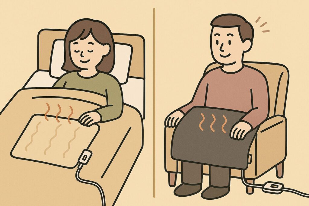 本来は布団の上にかけて使う「電気掛け毛布」を、日中のひざ掛けとして使うことにどんな違いがあるのか。