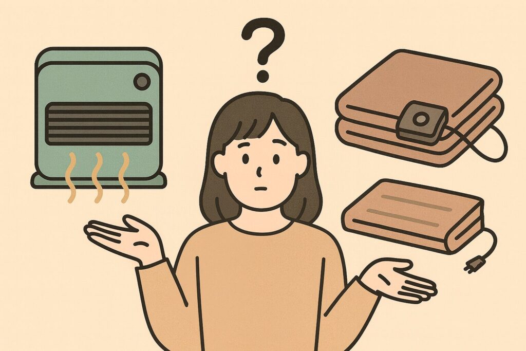 デスク下やキッチンの足元など、「ひざ掛けだけではまだ冷える…」という場合は、電気代が安い足元ヒーターの選び方と在宅ワーク向けの冷え対策を解説した記事もチェックしてみてください。