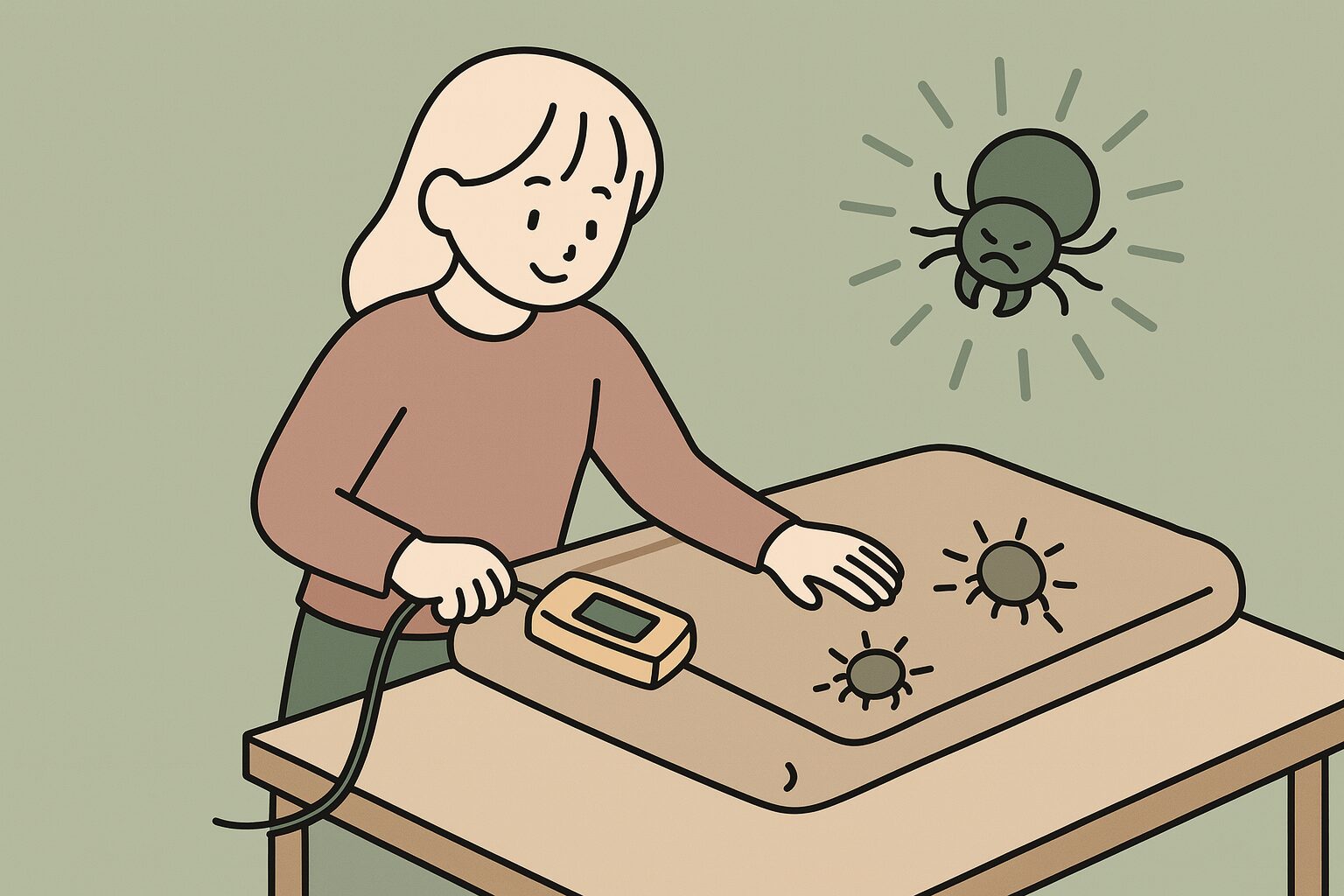 ダニは熱に弱い生き物ですが、同時に意外と賢いんです。普通に布団の上に電気毛布を敷いてスイッチを入れても、熱くなった場所から冷たい場所へ、つまり布団の裏側や隅っこへササッと逃げてしまいます。これじゃあ、いたちごっこですよね。