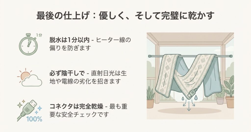 電気毛布が洗える理由や、ドラム式がNGな背景まで一気に整理したい方は、電気毛布が洗える仕組みと注意点の解説も参考にしてみてくださいね。