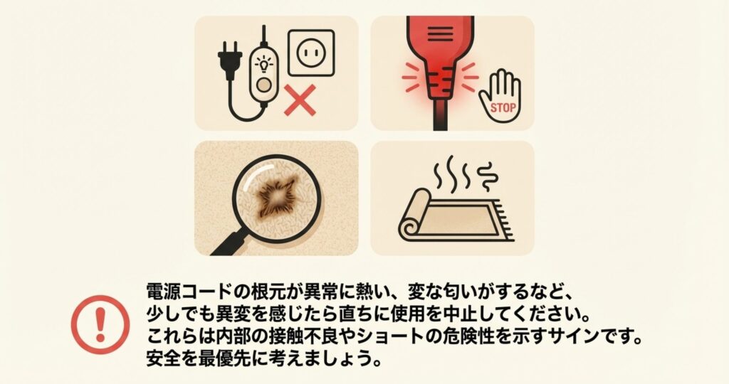ホットカーペットは私たちの体に直接触れるものだからこそ、少しでも「おかしいな」と感じたら、直感に従って使用を控えるのが一番の安全策ですよ。