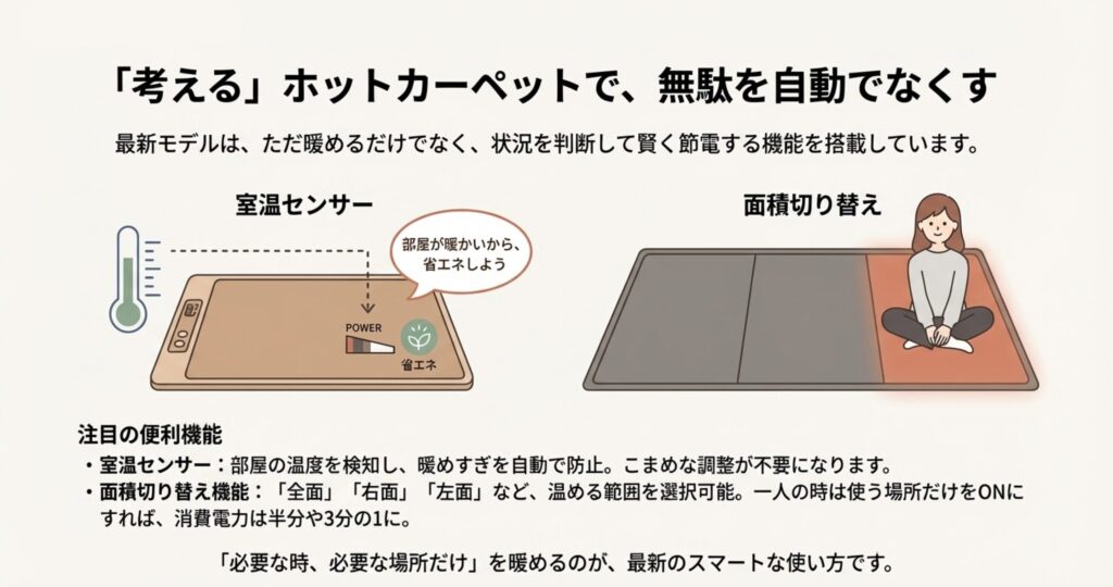 最近のホットカーペットは、ただ温めるだけじゃなく「考える」ようになっています。