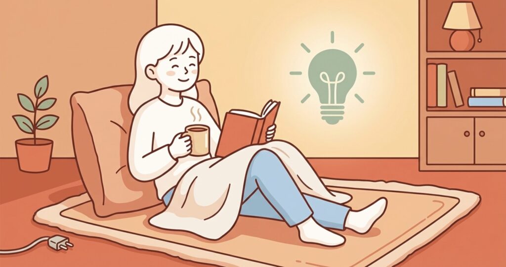 省電力暖房の選び方をもう少し掘り下げたいなら、電気毛布をホットカーペット代わりに使う節約術のように、消費電力の小さいアイテムへ置き換える発想も役立ちます。