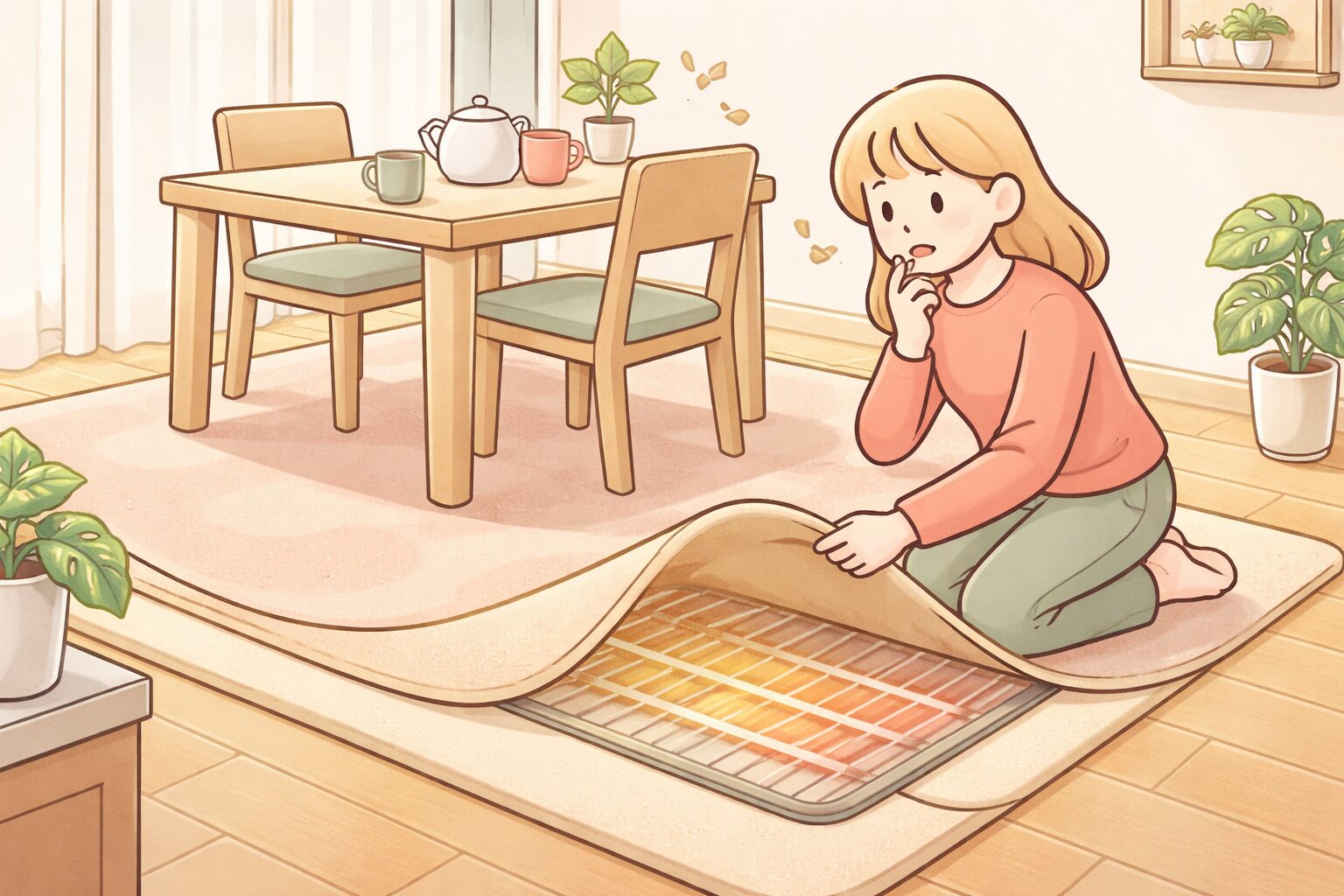 さらに床材の保護や断熱効率まで含めて対策したい場合は、ホットカーペットの下に敷くものの選び方もあわせて確認しておくと安心です。
