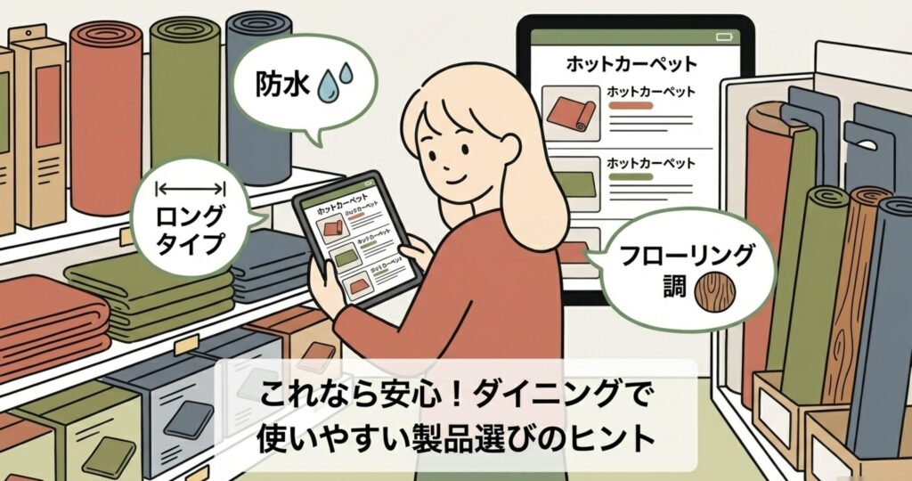 ここからは、これから購入を考えている方や買い替えを検討している方に向けて、ダイニングなどのハードな環境でも使いやすい、タフで便利なホットカーペットをご紹介します。