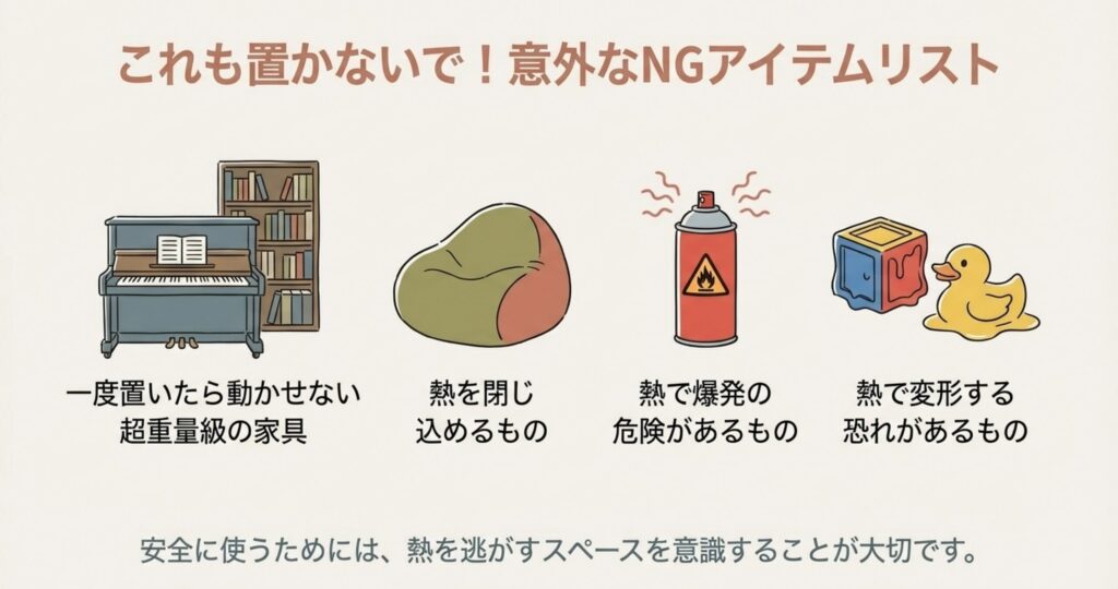 テーブルや椅子以外にも、実は「これは置いちゃダメ!」というものがいくつかあります。