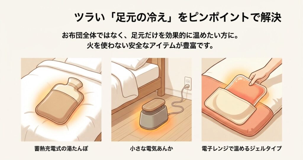 お布団全体を温めるのもいいですが、もっとピンポイントで足元をケアする方法もあります。