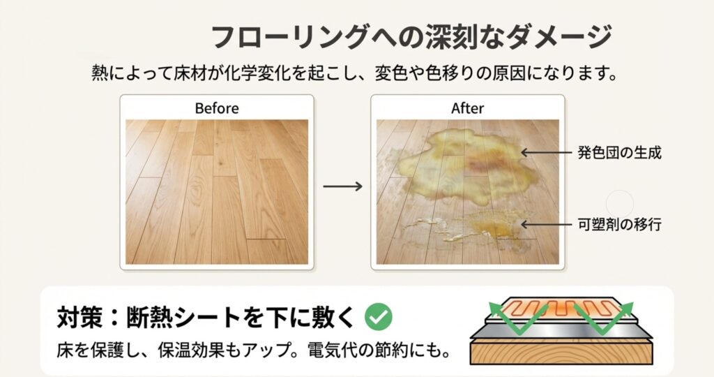 ホットカーペットの熱は、あなたの足元だけでなく、その下のフローリングにも影響を与えます。