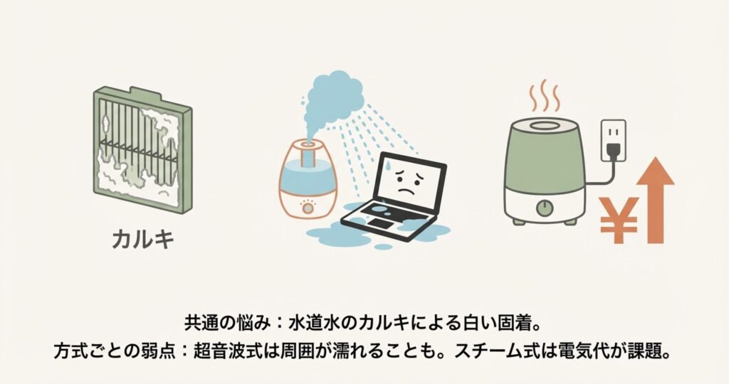 あとは、加湿方式によるデメリットも無視できませんね。