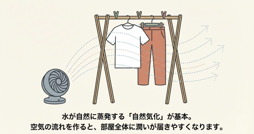 加湿器がないとき、まず味方につけるべきは「自然気化」という現象です。