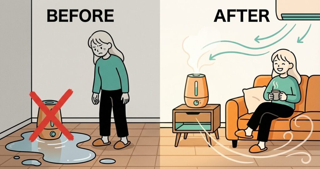 加湿器は、私たちの健康を守ってくれる心強い味方です。だからこそ、床が濡れるといったトラブルで嫌いになってほしくないな、というのが私の本音です。