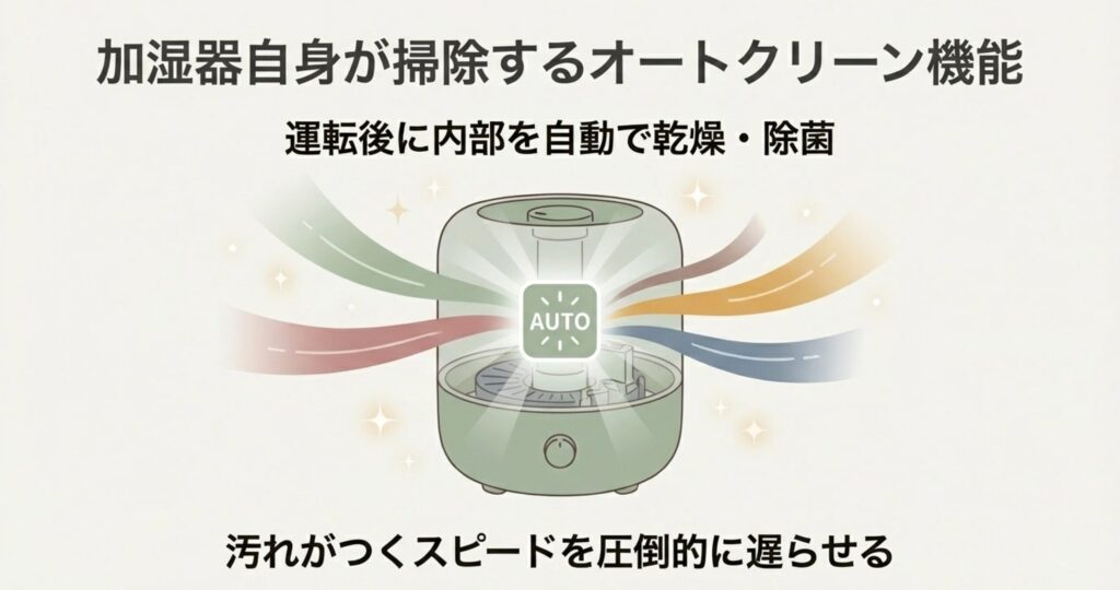 機械任せで最適な湿度をキープできれば、本体の汚れも発生しにくくなり、結果として手入れの頻度を下げることができます。