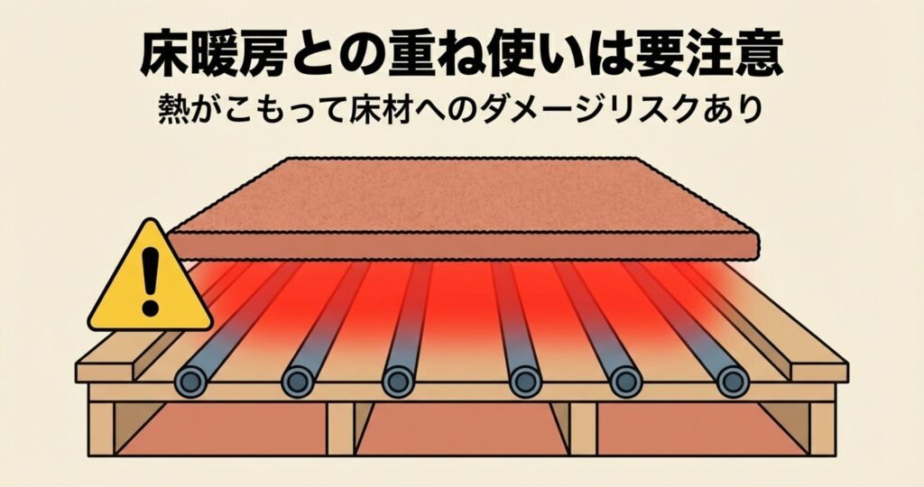 床暖房の上でのホットカーペット活用や選び方まで含めて確認したい場合は、床暖房の上でホットカーペットを使うときの注意点も参考になりますよ。