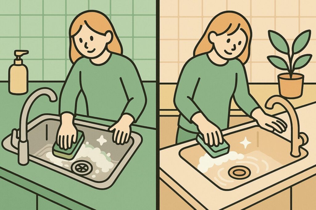 シンク掃除で一番大事なのは、「素材(ステンレスか人造大理石か)」と「汚れの種類(水垢か油・ぬめりか)」を見極めることでしたね。