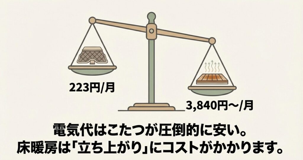 こたつと床暖房はどっちが安い?