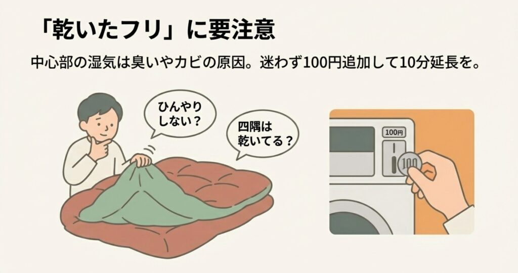 もし少しでも「怪しいな」と思ったら、迷わず100円追加して10分延長してください。その100円が、来年も清潔に布団を使うための保険だと思えば安いものです。
