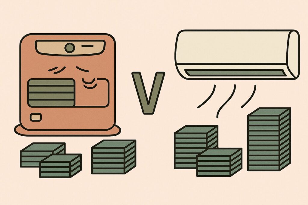 最近のエアコンは省エネ性能がすごいので、一日中つけっぱなしにするような使い方なら、実はエアコンの方が安く済むケースも増えています。特に、断熱性の高いお部屋ならエアコンの圧勝かも。