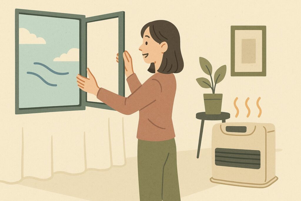 「せっかく暖まったのにもったいない!」って思いますよね。でも、新鮮な空気を取り入れないと、酸素が減って不完全燃焼の原因になります。