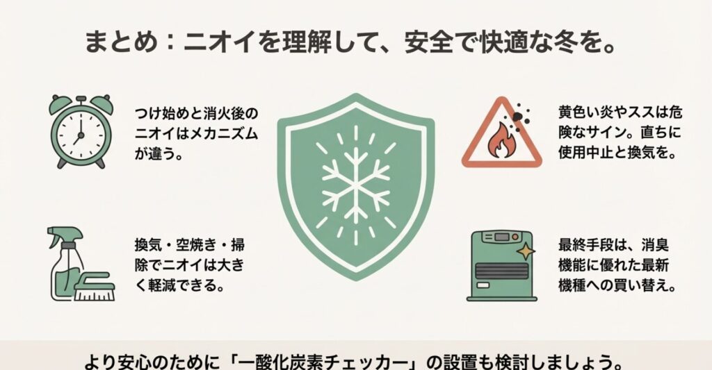 この記事を読んでいただければ、あのイヤなニオイに悩まされることなく、ポカポカと快適で安全な冬を過ごせるようになるはずです。専門的な話も噛み砕いてお伝えするので、ぜひ最後までお付き合いください!