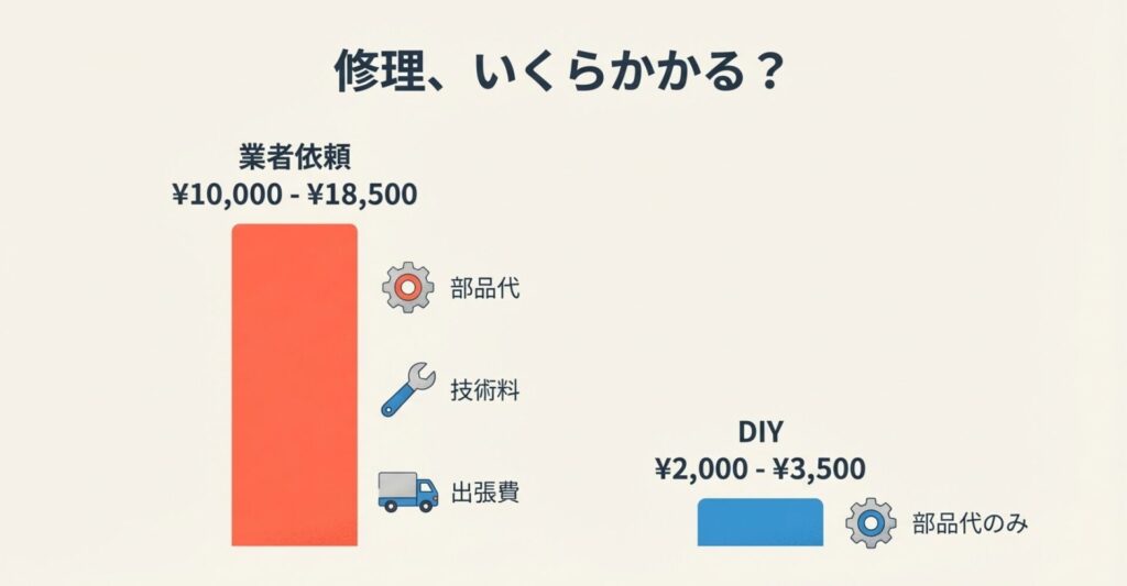 | 費用の目安 | 10,000円 〜 18,500円 | 2,000円 〜 3,500円(部品代) |