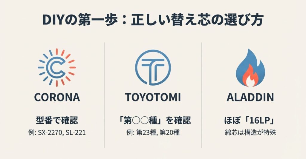 コロナやトヨトミなどメーカー別の適合芯