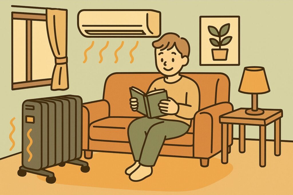 そして、部屋がある程度暖まったらエアコンをオフにし、オイルレスヒーターだけのエコ運転に切り替えます。こうすることで、最初の立ち上がりの遅さをカバーしつつ、その後の温度維持は乾燥しにくいオイルレスヒーターに任せるという「いいとこ取り」ができるわけです。