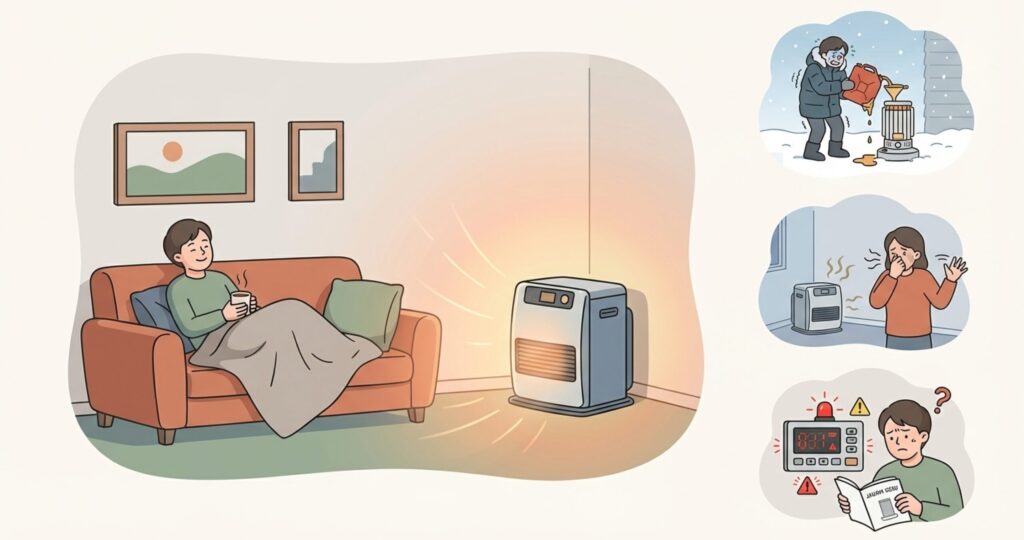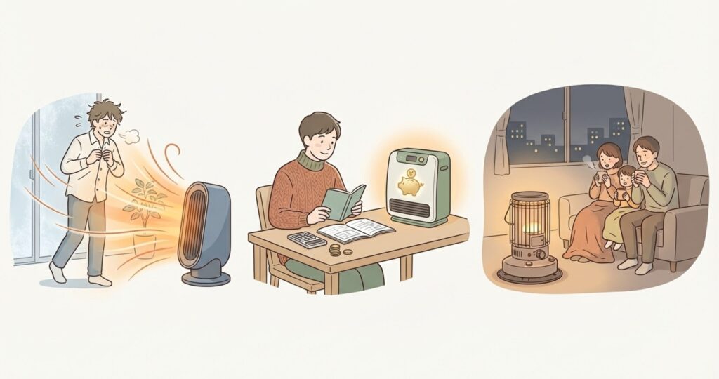 朝、冷え切った部屋で震えながら、どの暖房を使おうか悩んだことはありませんか?