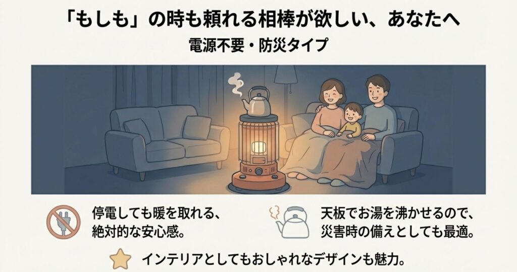 「もしもの時」を考えるなら、トヨトミの対流型ストーブは外せません。