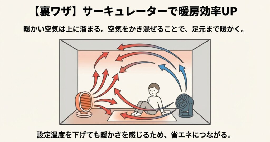 置き方のコツをもう少し具体的に知りたい方は、ファンヒーターへのサーキュレーターの正しい置き方と節約術もあわせて確認してみてください。