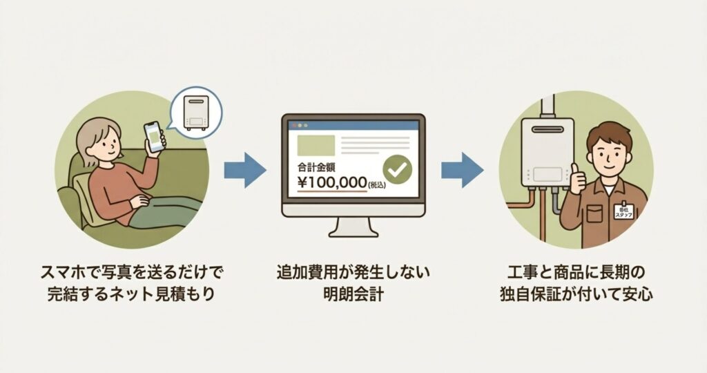 不安な方は、最初から本体と工事をセットで保証してくれる「交換できるくん」のような専門業者に任せてしまうのが、結局は一番安上がりで安心できる道かなと思います。